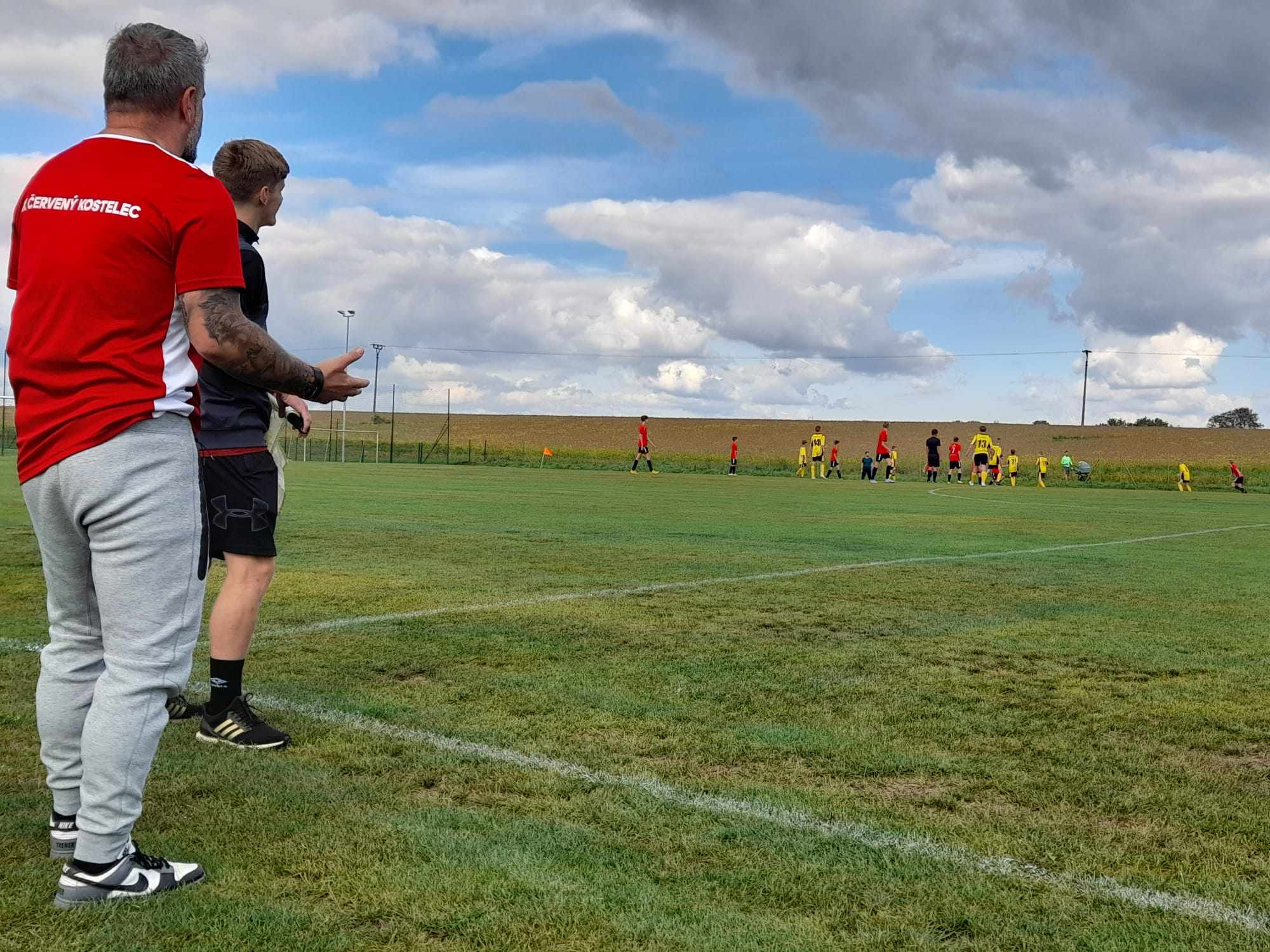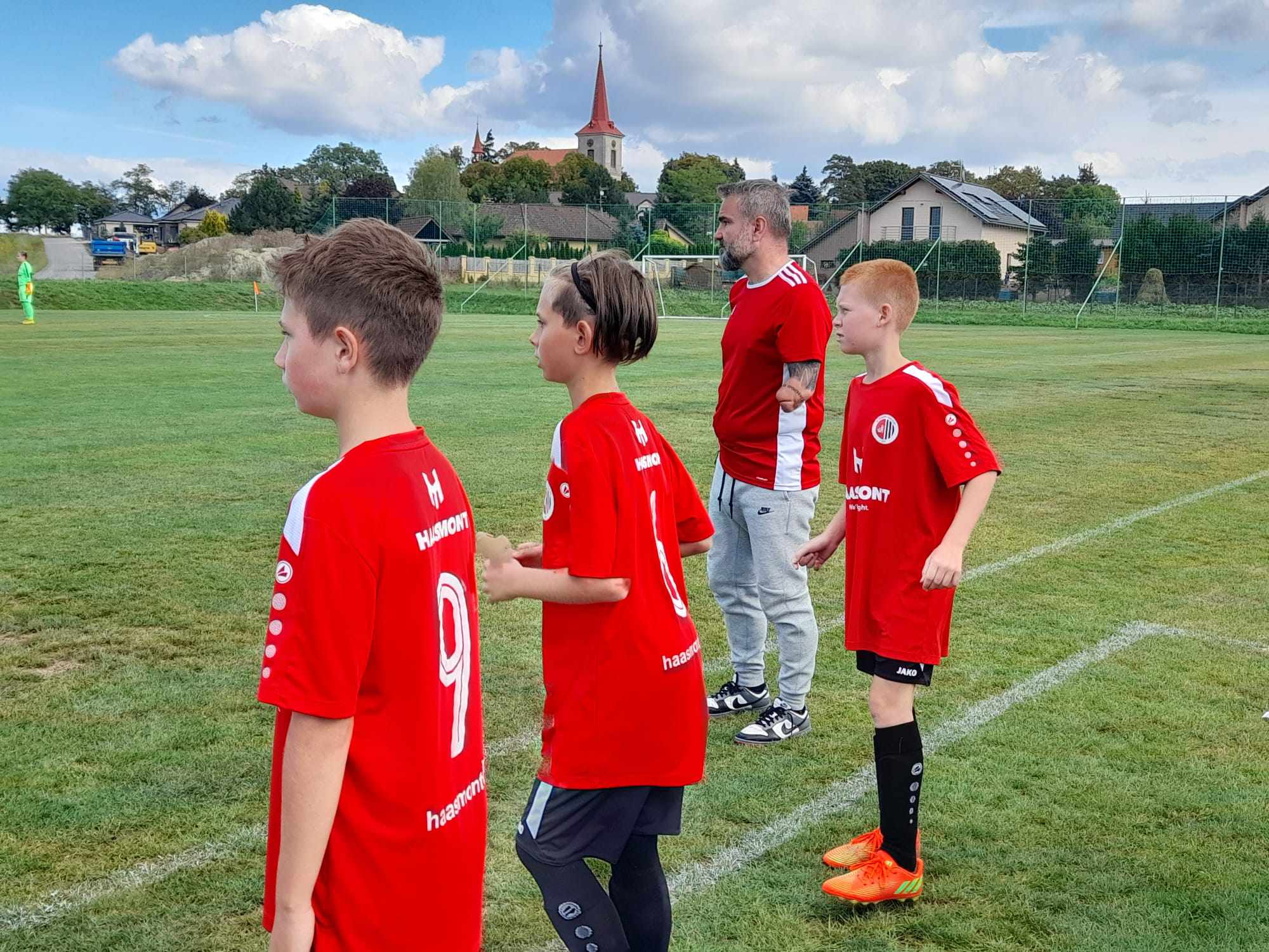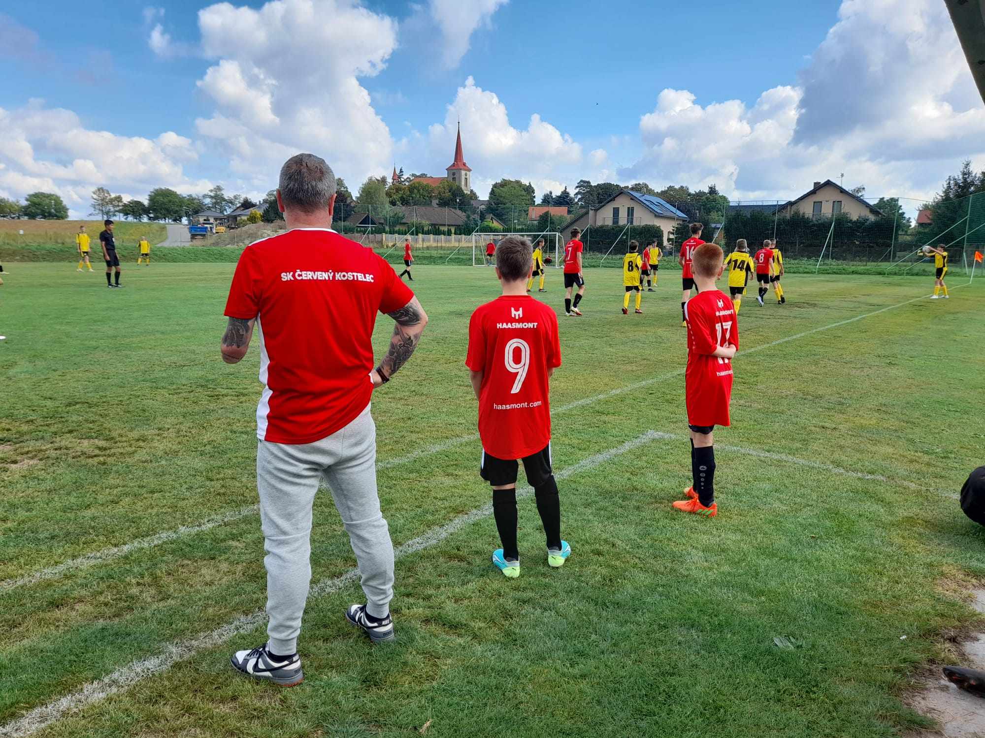 „Utkání, ve kterém nemohly být poločasy rozdílnější. Zatímco první byl z naší strany plný nepřesností, nedotahů, nedostupování, který byl bez pohybu, bez ochoty máknout, bez chuti a bez šťávy, ten druhý jsme proměnili v exhibici. Už to, jakým způsobem se drtivá většina hráčů postavila k předzápasovému rozcvičení, bylo vyloženě špatně. Dorazit na hrací plochu 20 minut před začátkem vycházkovým tempem někteří považovali za normální. A přesně ve stejném duchu se nesl první poločas. Platonické držení míče bez snahy hrát dopředu, kombinace v chůzi, opakovaná (velká) malá domů z půlky hřiště, nulová nebezpečnost směrem k soupeřovi brance … 30 minut smutný pohled, jehož výsledkem byl stav 1:0 pro domácí a naše trápení. Z tohoto marastu nás vytáhnula akce, kdy Matěj Říha zatáhnul míč po pravé straně, natáhnul na sebe dva bránící hráče a nezištnou přihrávkou vyzval ke skórování Nicolase Smrce, který jen uklidil míč do prázdné branky. Šest minut nato se prosadil Matěj sám, když po individuální akci obešel vše, co mu stálo v cestě a dokonal obrat na 2:1. Tak skončil i poločas. Ten druhý nemohl být prvnímu míň podobný. Změna rozestavění, posílení středové řady a tím pádem přechodové fáze a soupeř jako by na hřišti ani nebyl. Chvílemi až exhibiční dominanci se nám dlouho nedařilo přetavit v góly, ale to byla jen otázka času. Do 65. minuty jsme spalovali i ty největší příležitosti, ale potom nám tam spadlo vlastně všechno, do čeho jsme kopli. Přestože jsme utkání zvládli, proti TOP týmům by takový výkon určitě nestačil. Už teď domlouvám zápasy, které nás OPRAVDU prověří a ve kterých bychom s takovým přístupem dostali pořádnou facku. Ale i to je pro správné nastavení v hlavách potřeba. Dík patří rodičům, kteří neváhali vzít auto, naložit nejenom své děti a ještě nás v utkání podporovali. Jste skvělí.“