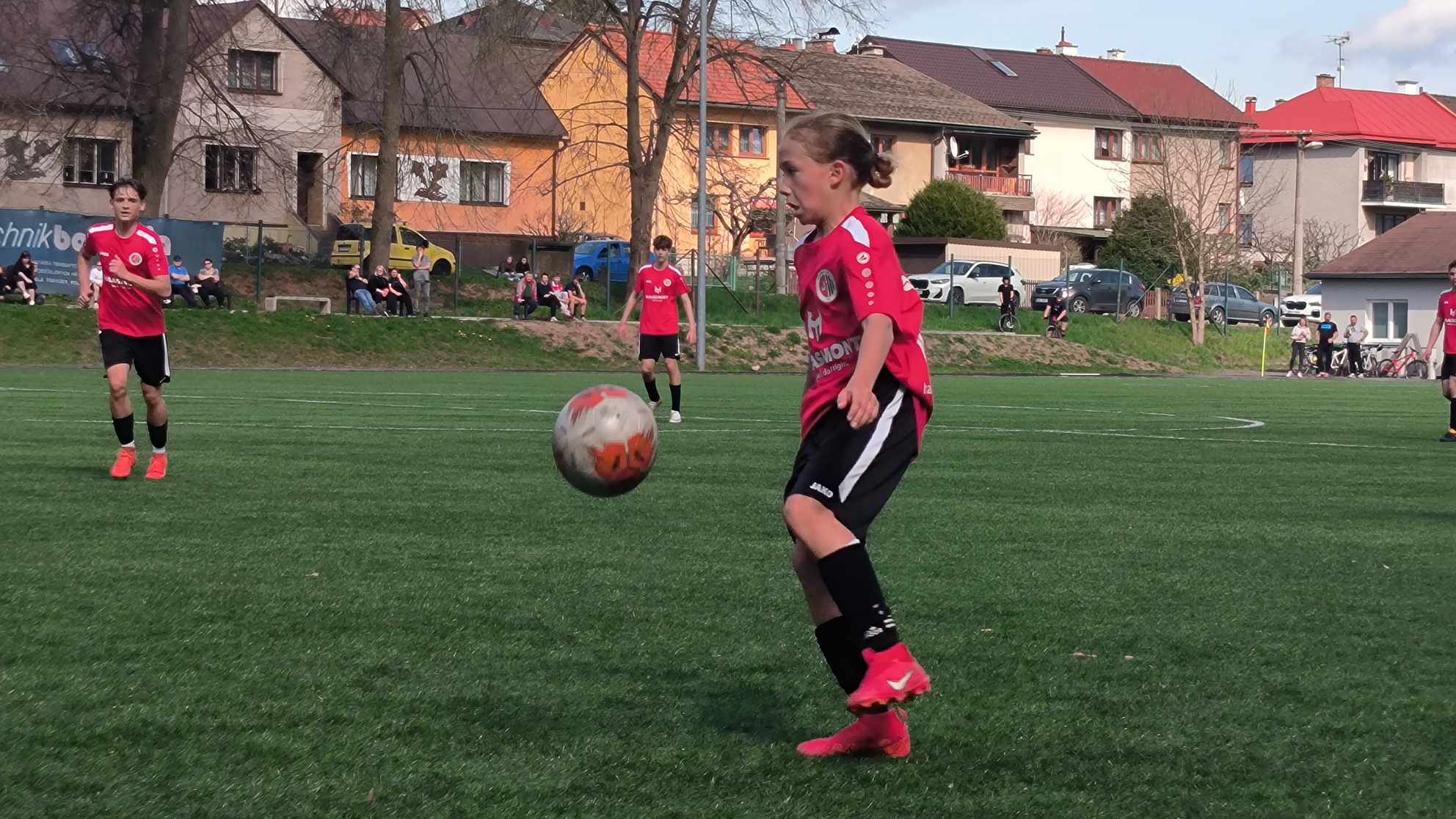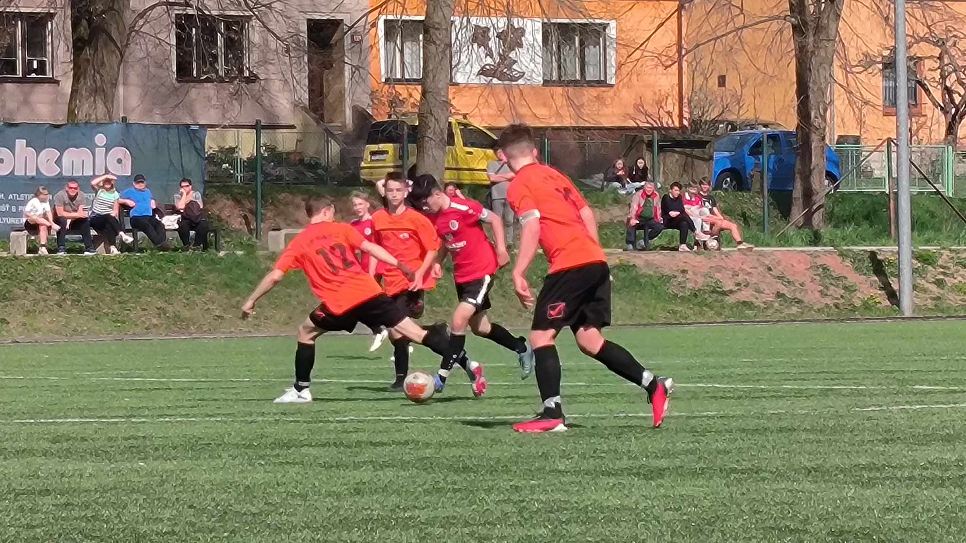 „Žákovské áčko zajíždělo k dalšímu utkání finálové skupiny krajského přeboru na umělku do Nové Paky. Soupeř, který dokázal porazit tým ze Solnice, budil už před začátkem zápasu při pohledu na jejich urostlé hráče velký respekt a po celý první poločas jsme se vlastně pořádně nedostali ke své kombinační hře. Zato domácí roztáčeli herní kolotoč a musím uznat, že byli ve všech ohledech lepším týmem. Ve všech, až na obranu. Ta nám dnes fungovala skvěle a Zdenda Semerák opět ukázal, jak je pro nás důležitý. Zleva mu kryl bok dnes excelentní Nicolas Smrc, který ale už do druhé půle nemohl dík bolesti v koleni nastoupit. Přechodová fáze se ale prvních čtyřicet minut nedokázala srovnat s důrazem domácí záložní řady a množství zbytečných ztrát byla vodou na mlýn domácích. Ti nám toho celý poločas moc nedovolili a sami se stále tlačili k naší brance. Škoda necitlivého přerušení hry, kdy už jsme překonali brankáře a míč už se kutálel do jeho prázdné svatyně, i obrovské příležitosti Filipa Součka, který ale nedokázal skákavý míč dorazit o několik minut dýl do odkryté branky. Na druhou stranu nás Aneta zázračným zákrokem zachránila od pohromy, když konečky prstů vytlačila křižnou střelu na rohový kop. O přestávce jsme si v kabině nastavili jasný cíl: držet víc míč na našich kopačkách, otupit tím domácí tlak a sami se pokusit hrozit mnohem víc v útoku. K tomu nám nemalou měrou pomohl Matouš Pácalt, který se místo mezi tři tyče postavil na hrot a svou silou na domácí platil (tady si dovolím poděkovat Lucce Součkové, která mi tuto myšlenku vnukla 😉 ). Obraz hry se změnil a naši borci se od začátku druhého poločasu natlačili před branku domácích. Výsledkem byl gól z kopačky Kuby Jansy a naše vedení 1:0. A přestože to domácí rozhodilo, neustále se hrál fotbal nahoru – dolů. Oko fanouška musel potěšit přímý volný kop Matěje Říhy, který asi z dvaceti metrů orazítkoval „pouze“ břevno. A protože jsme soupeře už do vyložené šance zodpovědným týmovým výkonem nepustili, mohli jsme po závěrečném hvizdu rozhodčího Janoty zvednou ruce v oslavném gestu a připisujeme si další tři body do tabulky a hlavně si potvrzujeme, že při zodpovědném, soustředěném výkonu dokážeme hrát s každým 🙂 Díky borci, tohle bylo fakt o srdíčku a o morálu!!!“