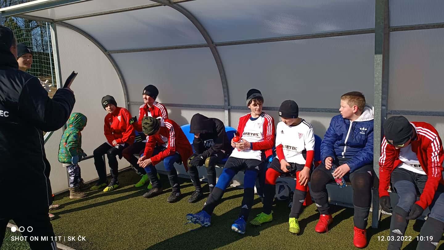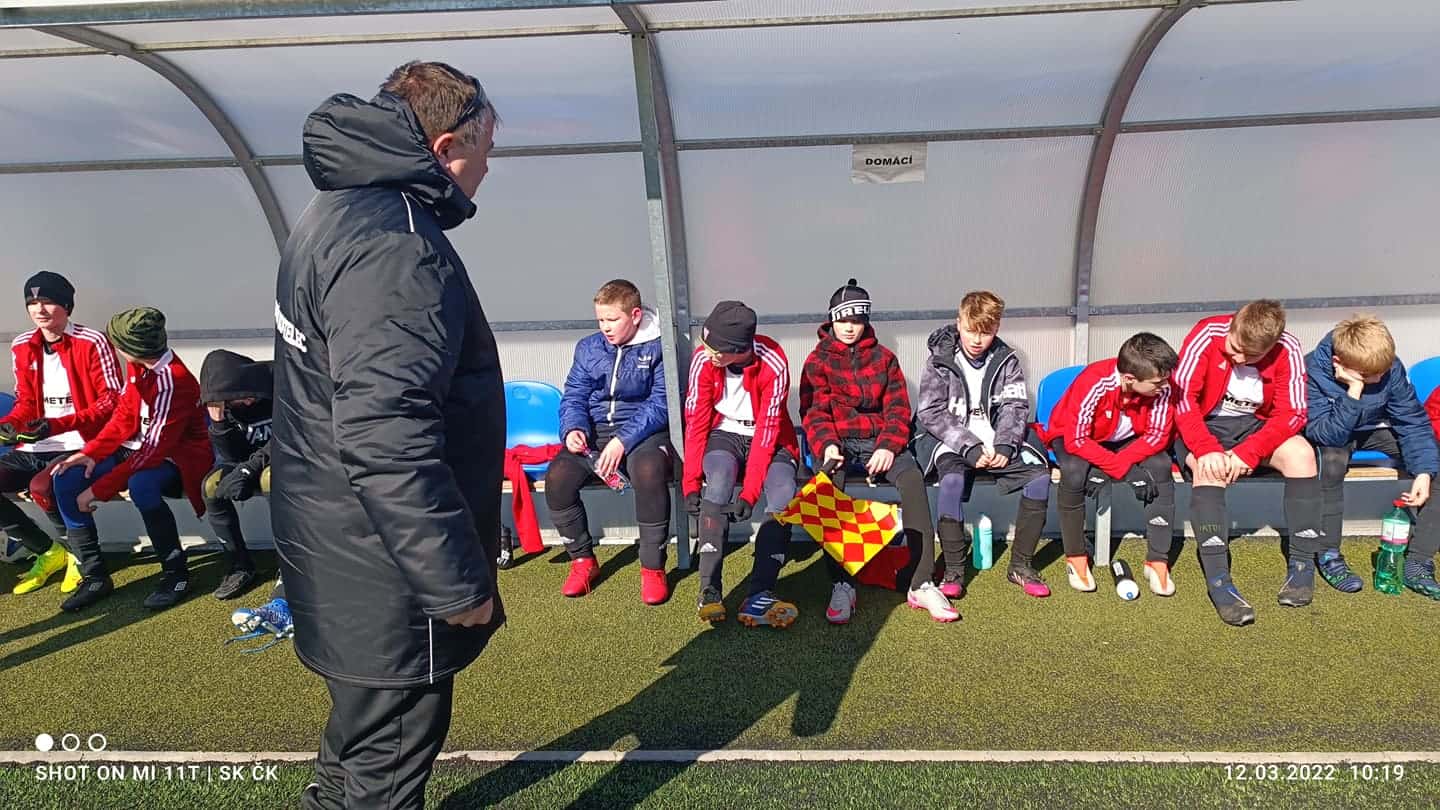 „Jak už bylo řečeno, do dnešního utkání jsme museli z důvodu marodky starších zapojit hned šest borců z mladších žáků (Jarda Boháč, Maty Erber, Kryštof Marek a Patrik Volhejn z ročníku 2009 + Matěj Říha se Zdendou Semerákem z ročníku 2010). Protože chceme hráče ročníku 2009 v průběhu jarní části zapojovat do hry na celé hřiště cíleně, spojilo se plánované s užitečným. V samotné hře byla zřejmá minimální zkušenost s prostorem, který velké hřiště nabízí. Což je jedním z hlavních důvodů, proč bude k zapojování hráčů 2009 do utkání U15 v průběhu celého jara docházet. Zvědomování si odlišností, seznamování se s „velkým“ fotbalem 10+1, do kterého se tito borci v letním období tak jako tak posunou.Všichni kluci mě svou hrou opravdu potěšili. Ať už šlo o defenzivní či ofenzivní část. Pochopitelným je rozdíl silový i rychlostní, když hráli proti až o tři roky starším. Přesto se každý z nich v rámci svých možností snažil hrát podle těch aspektů, které se snažíme v tréninkovém procesu zautomatizovávat – přebírání míče dopředu do volného prostoru na základě technických dovedností, vytváření neustálé nabídky pro hráče s míčem, zapojování se svým pohybem do hry i bez míče, přepínání, odvaha při soubojích 1:1 atd. Za mne dnes kluci jasně ukázali svůj potenciál a jsme rádi, že jsme kamarádům ze starších žáků dokázali pomáhat v průběhu celých osmdesáti minut.“